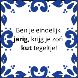 Bij tegelpret.nl maken we voor jou de meest grappige en unieke tegels. Heb je vandaag vóór 15.00 uur besteld? Dan wordt je tegel de volgende werkdag al geleverd! Dit is de perfecte gelegenheid om snel een cadeau voor je liefde, een geboorte, een huwelijk of een verjaardag te bestellen. Wacht niet langer en verras iemand met een bijzondere tegel! Voor al je vragen of opmerkingen, kun je ons bereiken via e-mail op info@tegelpret.nl en op whatsapp 0620954431